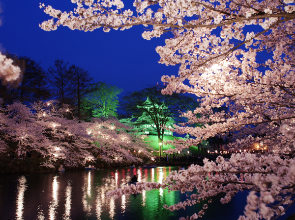 At Saruka Park, cherry trees bloom around a serene pond, offering the chance to admire the blossoms from a rowboat while colourful carp glide beneath the surface. Hirosaki Park delivers quintessential sakura scenes, with arching pink canopies framing the historic castle and moats. In winter, the park transforms again during its light-up event, where snow-laden branches are illuminated in a soft pink glow, creating the enchanting illusion of sakura blooming in the snow . |