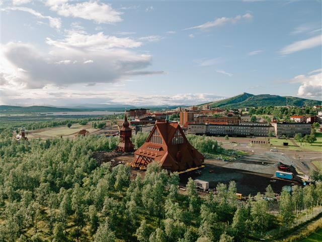 Built in the early 20th century and once voted Sweden’s most beautiful building, Kiruna Church is one of the country’s largest wooden structures. Its relocation became necessary due to the expansion of LKAB’s Kiruna mine, which required several buildings to be moved to a newly developed city center five kilometers away. |