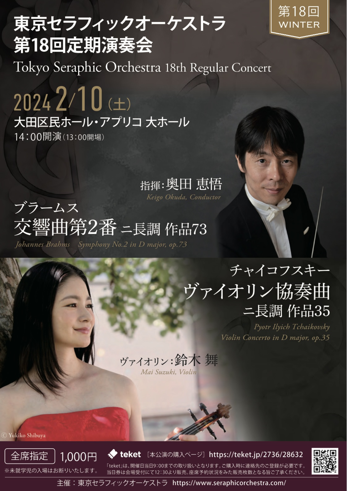 2/10は奥田 恵悟指揮、東京セラフィックオーケストラとチャイコフスキーのコンチェルトを共演します。