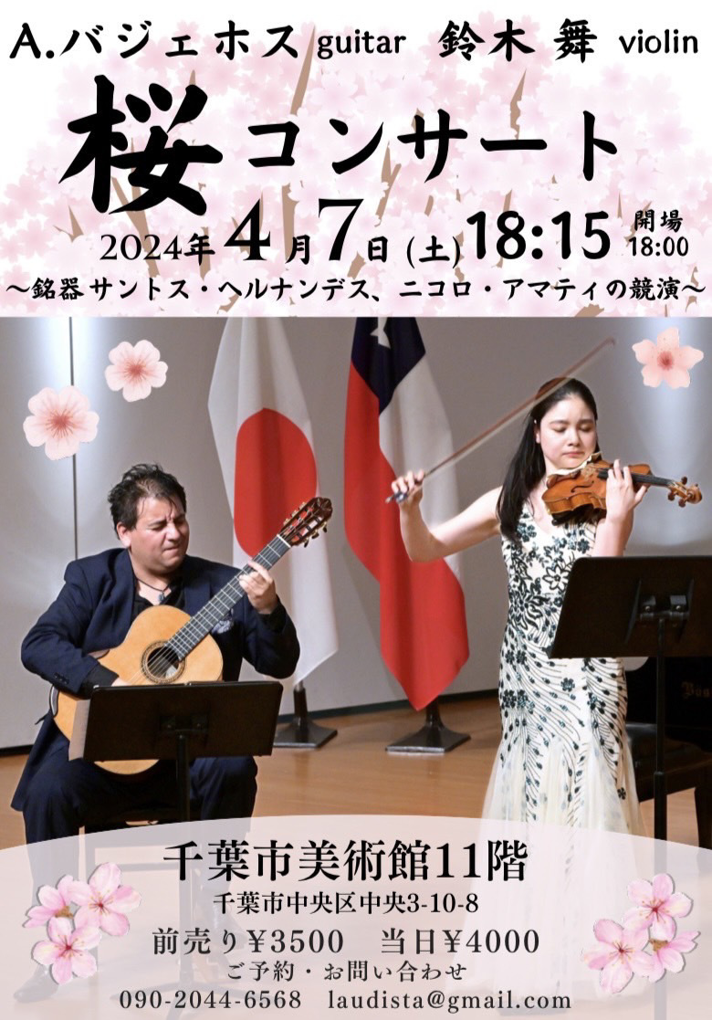 桜コンサート 2024年4月7日(日) 18:15~ 千葉市美術館11階 地図 共演:アレクシス・バジェホス(ギター)