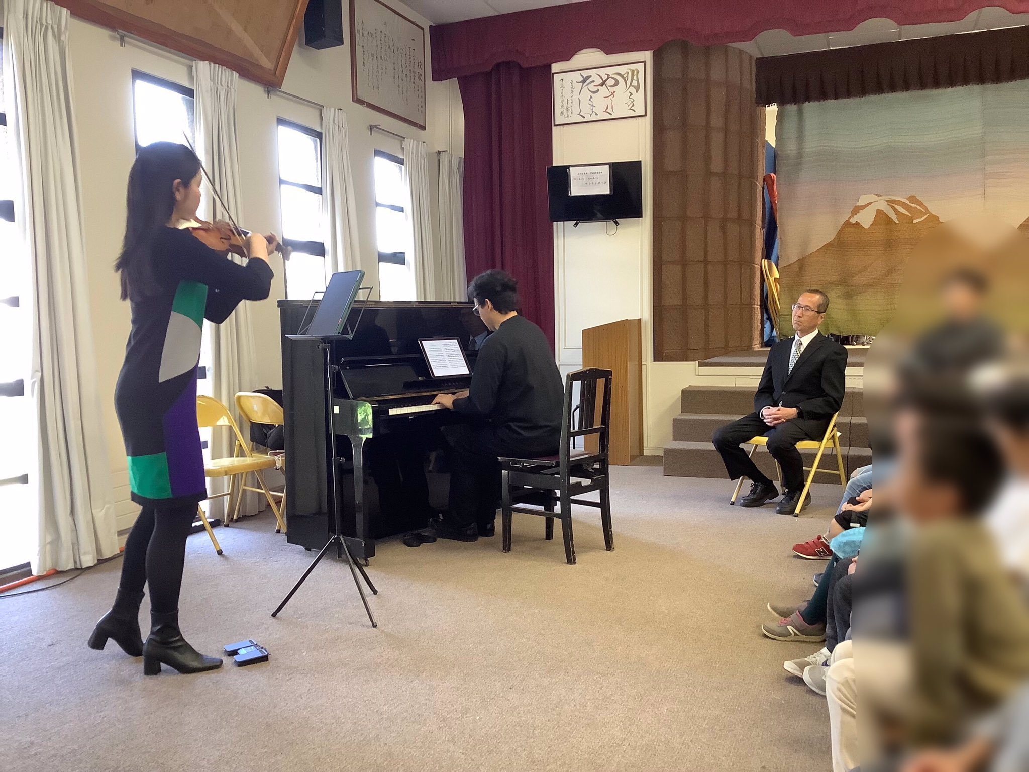 サンティアゴにある日本人学校でも、コンサートを開催しました。生徒たちが音楽ホールに足を踏み入れる際、皆謙虚に頭を下げ「失礼します」と挨拶を交わし、教育が行き届いている様子が伺えました。