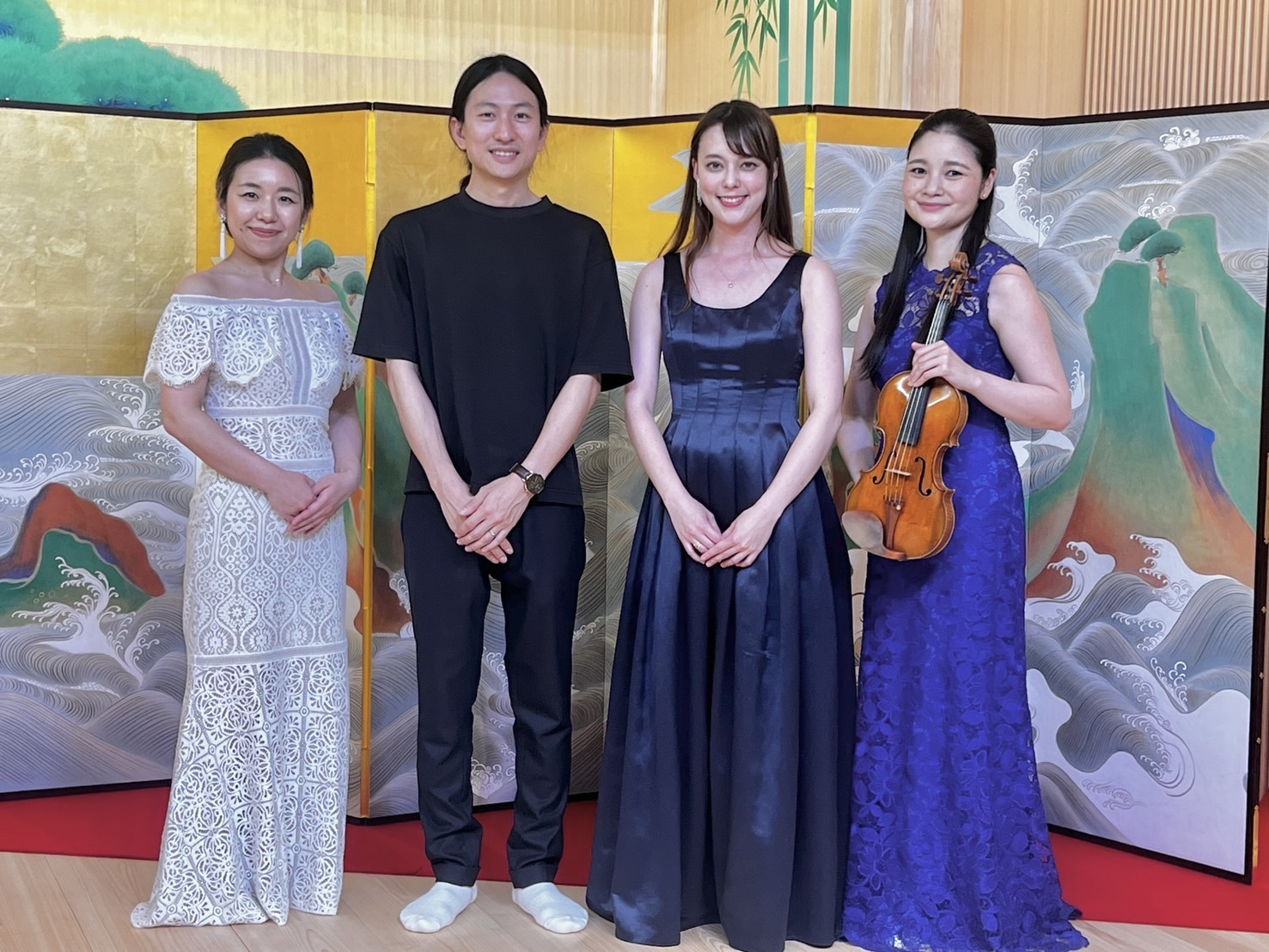 チェロのグレイ理沙さん、ピアノの小林侑奈さんと共に、展示された日本画からインスピレーションを得た特別な楽曲や、ピアノトリオの名曲を演奏しました。日本画と音楽が一体となり、視覚と聴覚の融合を楽しんでいただけたことと思います。
