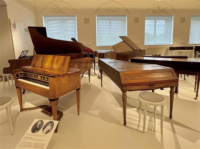 シューベルトの時代に主流だった“フォルテピアノ”は、木製の軽やかな構造に革巻きのハンマーを備え、タッチの違いによって細やかな表情をつけることができる打弦楽器です。その前の時代に使われていたチェンバロは撥弦楽器といわれ、弦を小さな爪ではじいて音を出す楽器です。この爪は昔は鳥の羽軸(カラスの羽など)で作られていました。ピアノのように鍵を強く押しても音の大きさは変わらないため、弾き方で強弱をつけることはほとんどできません。フォルテピアノの登場によって、鍵盤楽器の表現の幅が広がったのです。