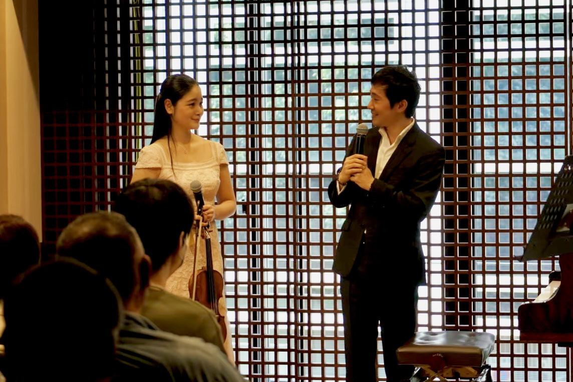 さらに、プライベートなコンサートで2台のヴァイオリンとピアノによる特別なプログラムをお披露目しました。スイスで共に学んだ尾池亜美さん、ミュンヘンで共に研鑽を積んだ則行みおさんという心強い仲間たちとともに、初めて挑戦するレパートリーに取り組みました。2台のヴァイオリンが、時に織り合い、時に火花を散らすように交互に語りかけるやり取りが、音楽に新たな色をもたらしてくました。