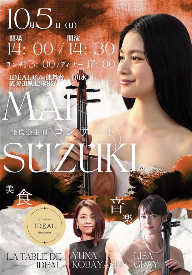 そして18日には山梨へと伺います。ピアノの小林侑奈さん、チェロの加藤文枝さんとのトリオで、秋の空気とともに、山梨ならではのワインやグルメと一緒に味わっていただけるコンサートです。自然と食、そして音楽が響き合う豊かなひとときをお届けできればと思います。