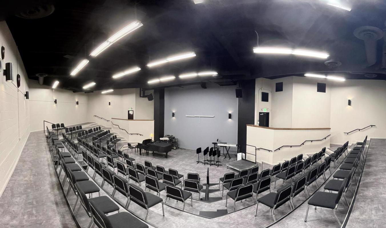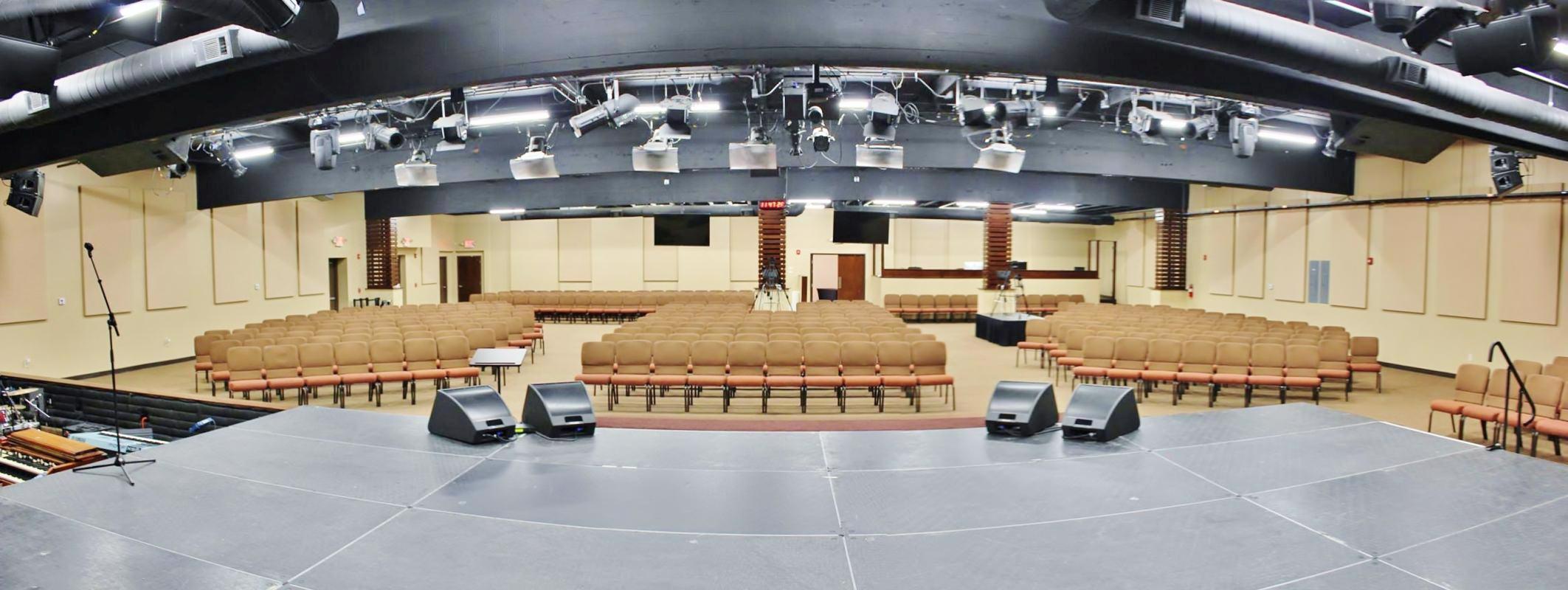 - Large Auditorium with a Stage and Removable Chairs