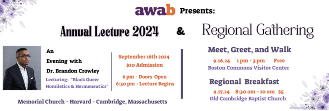 On Monday, September 16, in Memorial Church at Harvard, the Association of Welcoming and Affirming Baptists will welcome Rev. Dr. Brandon Crowley as our 2024 guest lecturer.