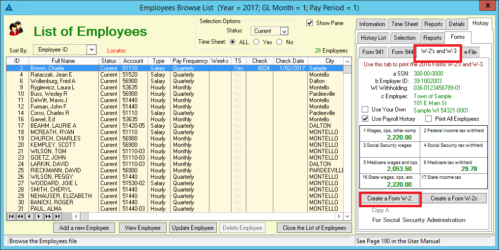 When your check boxes are selected, you will chose "Create a Form W-2." |