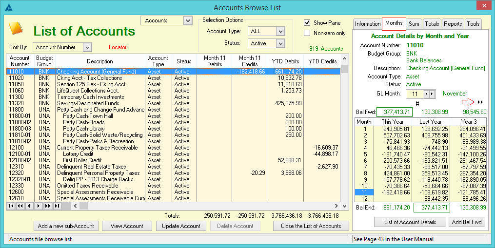 Another feature added is the ability to expand the lookback on screen to six years from the three standard years that has always been part of the List of Accounts View. This can really help if you find an account out of balance and need to locate the reason which may be buried several years back