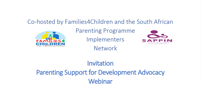 Universal parenting support for child development is recognised as a national development priority in policy stemming from as early as 2015. Translating this policy into lasting change for everyone has faced challenges which government and civil society have been striving to address. To further advance and strengthen our collective efforts, The South African Parenting Programme Implementers Network (SAPPIN) and Families4Children, two leading Parenting Support advocates, invite you to this webinar, which will:
