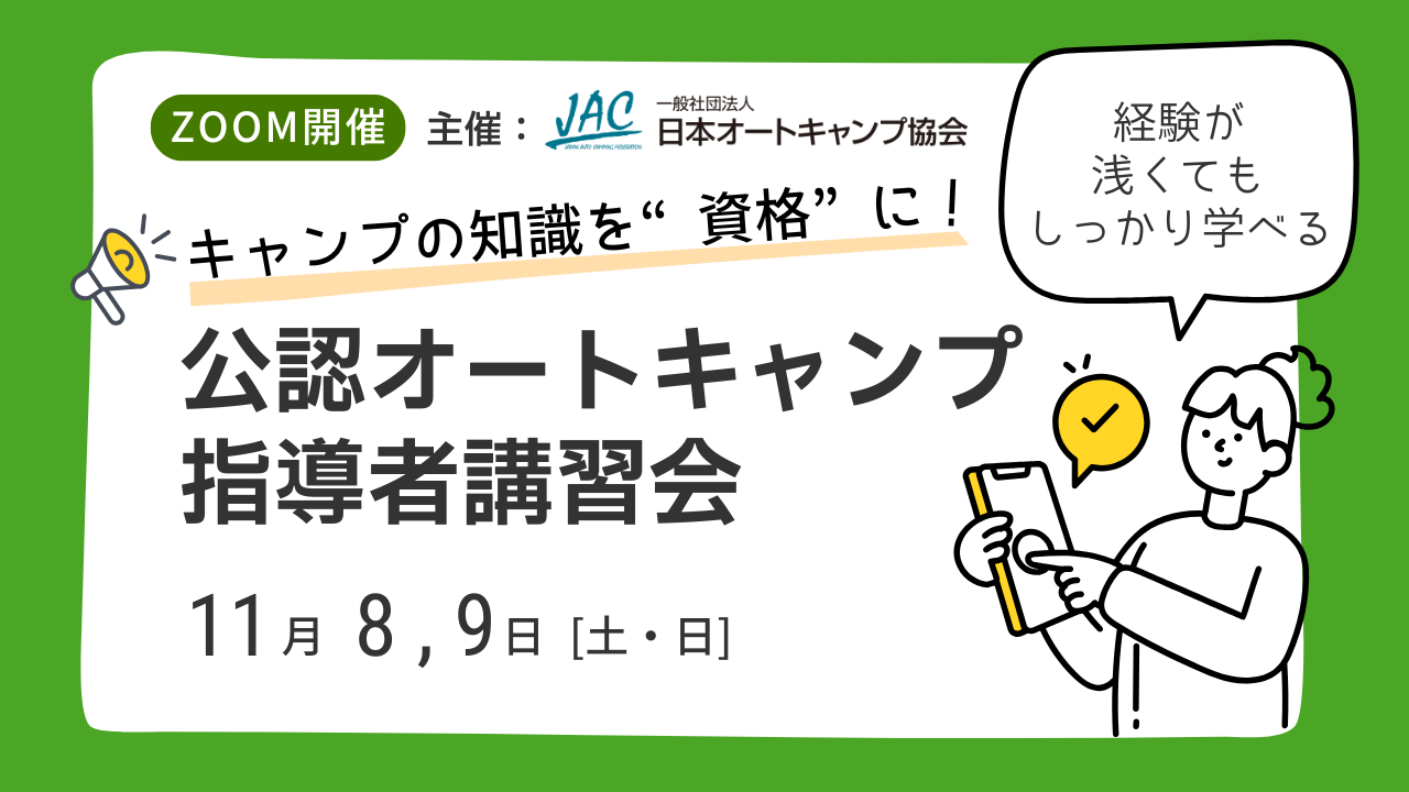 公認オートキャンプ指導者講習会など、キャンプの知識や技術を学べるチャンスも。