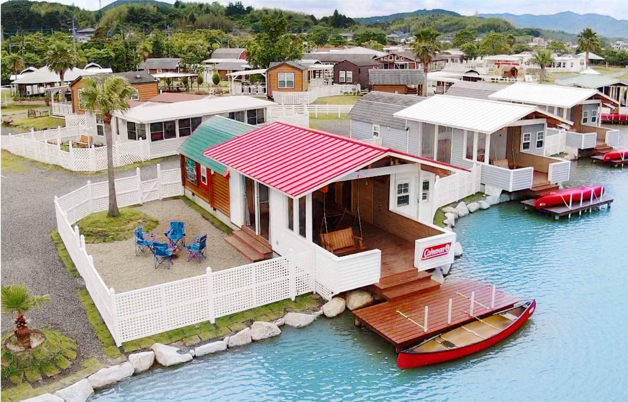 ゲートをくぐればそこはアメリカスカイブルーの空、ハンモックに揺られる休日。水辺ではカナディアンカヌーが行き交うアウトドアリゾート。アトラクションも充実。