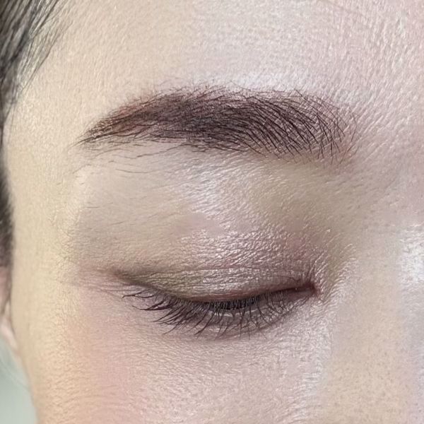 目元は、濃いカーキを目尻に少し乗せて