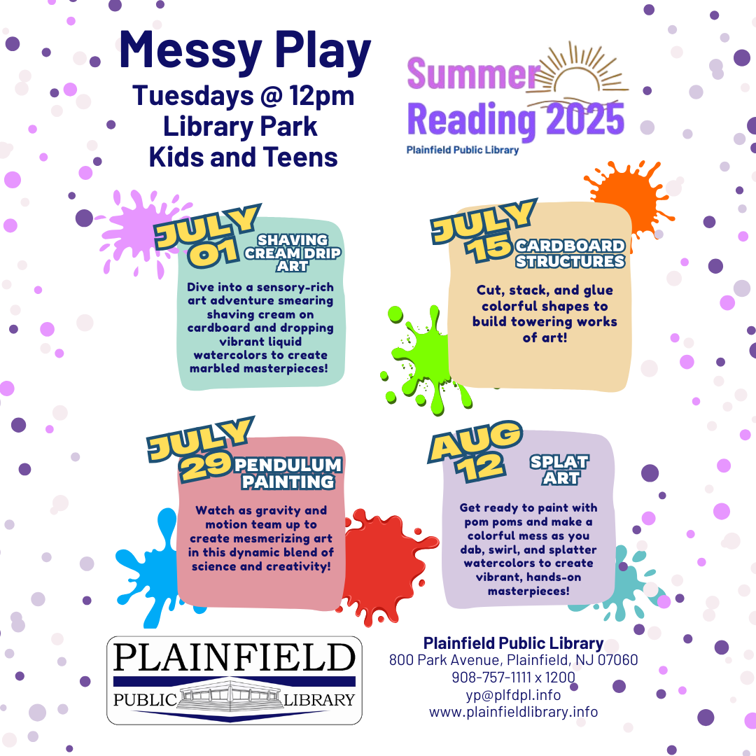The library may have been closed, but our patrons found us exploring all over Plainfield. We tie-dyed shirts in library park, handed out information at the farmers market, gave out library cards at Iris House, helped with resumes at North Plainfield library, held family game night at the Plainfield Performing Arts Center, and more! |