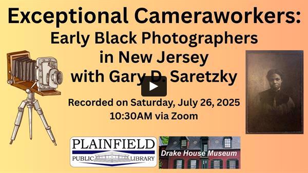 If you missed our "Exceptional Camera Workers: Early Black Photographers in NJ with Gary Saretzky" program you can watch the recording here for a limited time! |