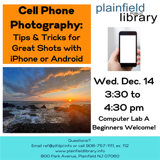Join us for tips, tricks and hands-on know-how to help you get the most out of your cell phone's ability to take great photos. For iPhone and Android-based phones.