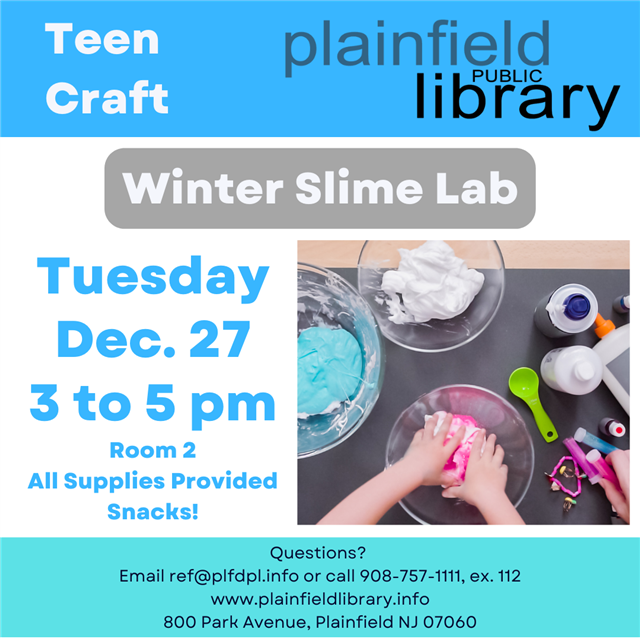 Come and make Winter-themed goop at our Winter Slime Lab. You'll be able to make some festive slime and enjoy some snacks. See you there!