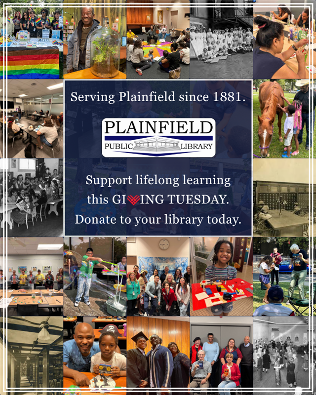 This month, we're inviting you to join us in the spirit of giving by participating in #GivingTuesday and consider donating to our library. When you donate to the Plainfield Public Library, you invest in a future where everyone has the opportunity to learn, grow, and explore for generations to come.