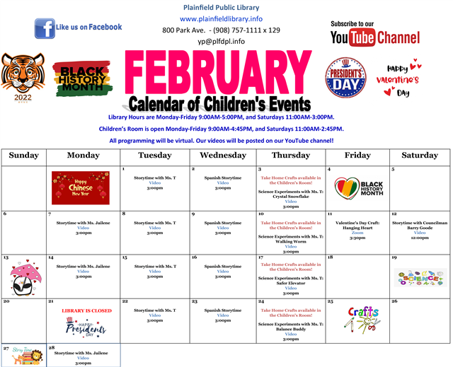Check out the Children's Pages for more info or get in touch with the Children's Library at 908-757-1111 x129! |