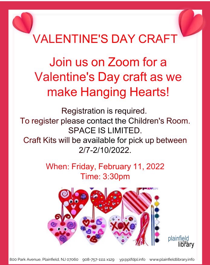 Valentine's Day Craft - Friday, February 11th, 3:30pm via Zoom