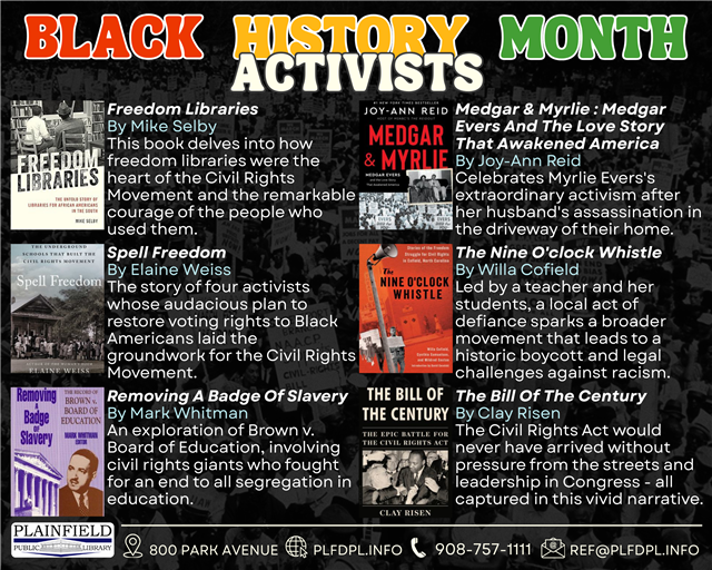 Black History Month is a time to honor the achievements, resilience, and contributions of Black Americans throughout history that are too often overlooked or erased. Libraries play a vital role in preserving these histories, offering access to books that educate, challenge, and inspire readers of all ages. Reading and learning during this month allows us to deepen our understanding of the past, recognize the roots of present-day experiences, and imagine a better future for all of us.