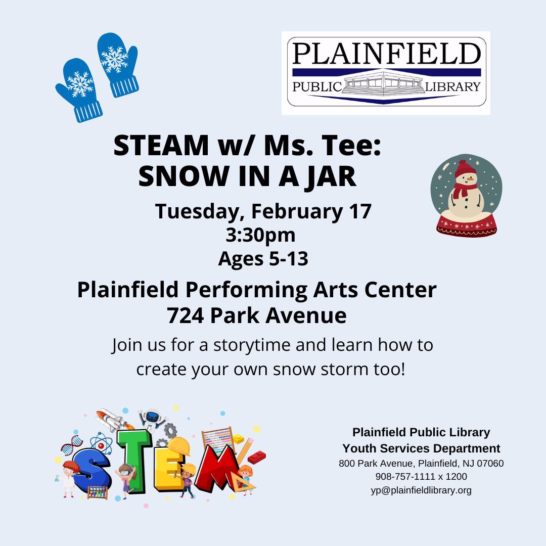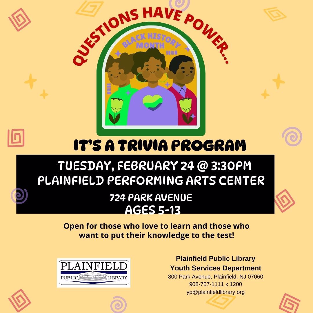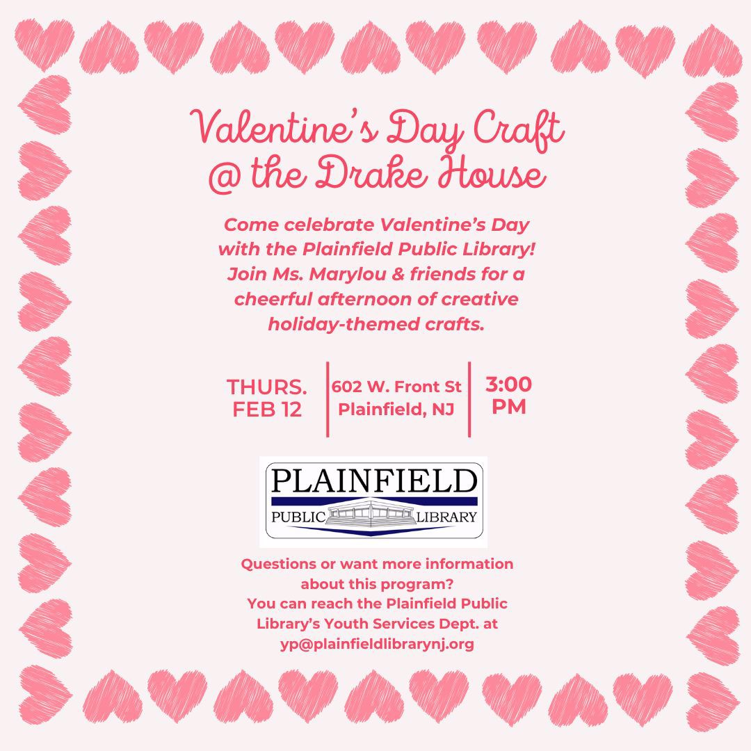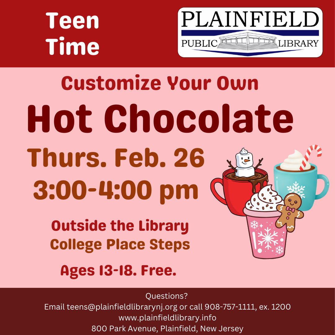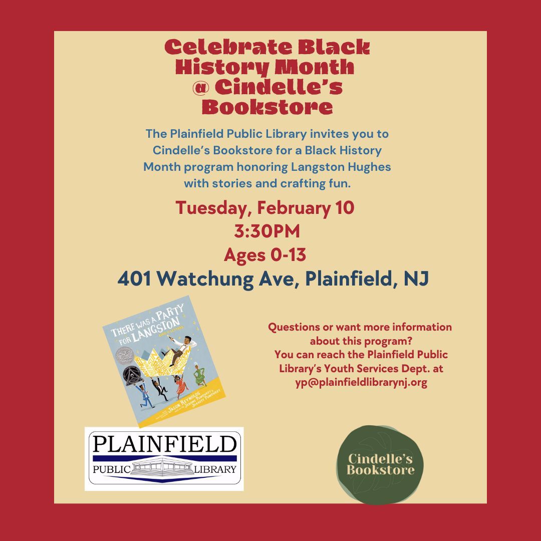 February is also Black History Month, a time to celebrate and honor Black leaders, creators, and communities that have shaped our past and continue to inspire our future. We will have special programs throughout the month, including a virtual event about the New Jersey Black Heritage Trail hosted by our Local History Department and the Drake House Museum. There will also be a Black History Month Celebration hosted by Youth Services, honoring Langston Hughes with stories and crafts at Cindelle's Bookstore. Can't make it to either of those? Scroll to the bottom of this newsletter to see a list of the many great events happening at other libraries in our area.