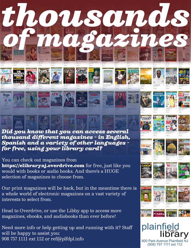 You can check out magazines from https://elibrarynj.overdrive.com for free, just like you would with books or audio books. And there’s a HUGE selection of magazines to choose from.