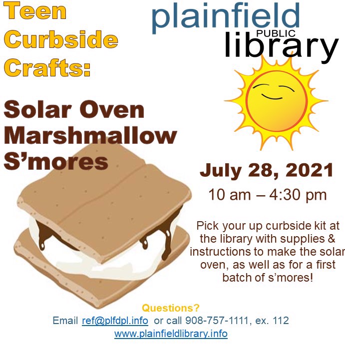 Pick up your kit at the library with supplies and instructions to make a solar oven and enough for your first batch of s'mores!