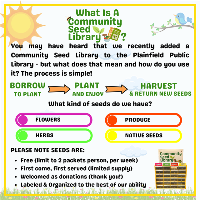 The Seed Library is currently located on the main floor. Stop by to pick up your seeds and start planting your dream garden today!