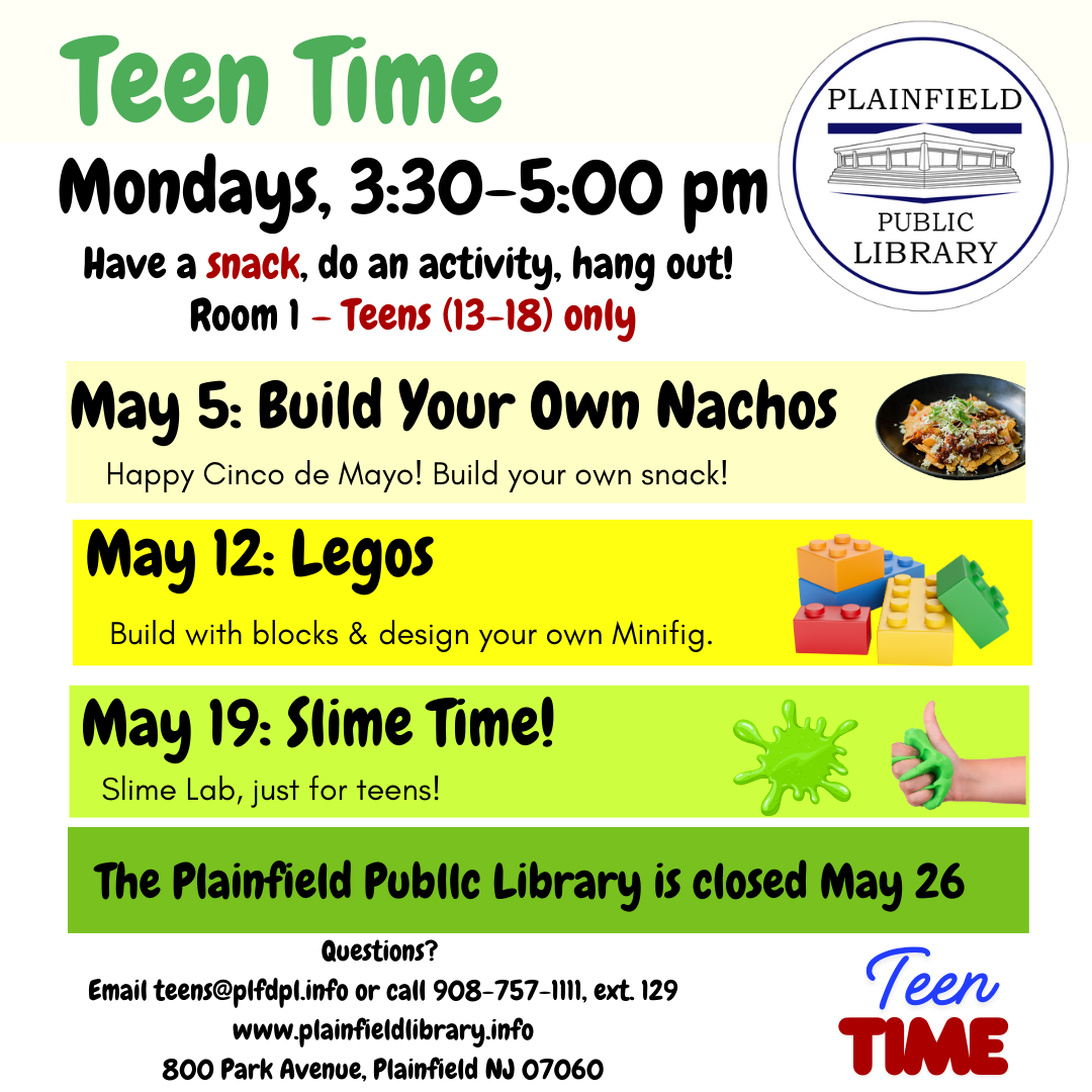 Mondays, May 5th & 19th 5:30PM in Children's Room |