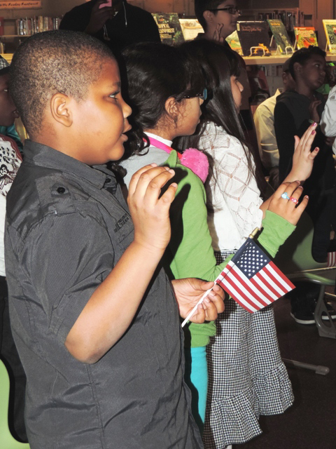 On November 13, 2013, the Library hosted a Children’s Naturalization ceremony in the Children’s Library. Twelve children from eight different countries recited the oath and were sworn in by a representative of the United States Naturalization Service and became United States citizens. After the ceremony, Ms. People read poetry to the children. The event was followed by a small reception with red, white and blue cupcakes, and assortment of other refreshments. A face painter was on hand to create patriotic face art for the participants.