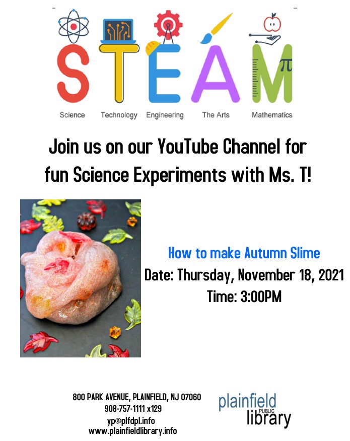 As I told everyone last month, we are back and continuing our services. Plenty of things to enjoy through Zoom. We're continuing our latest live serialization of a classic novel, the Children’s staff has their story-times as does our Councilman Barry Goode with his monthly reading. In addition, the Children’s staff has STEAM programming this month and takeaway Harvest crafts to pick up for at-home entertainment.