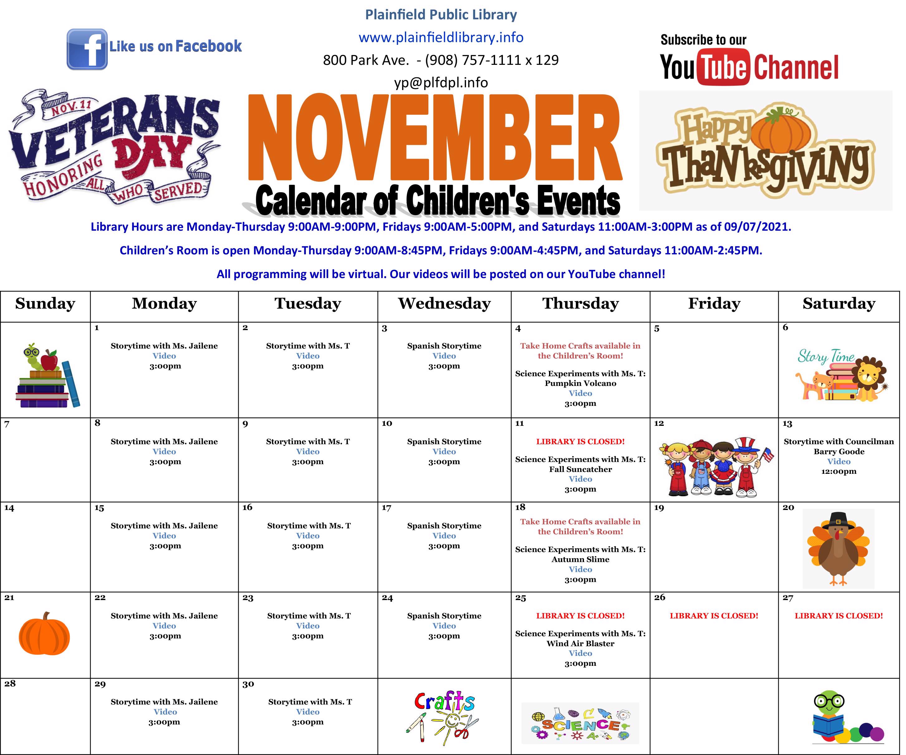 Have a safe and wonderful Thanksgiving and see you at the Library!