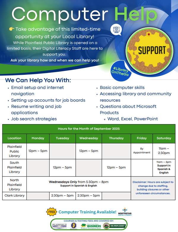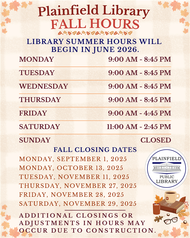 Keep scrolling to get a glimpse of what we have planned in September and how you can make the most of your local library. And don't forget, we are officially back to our Fall Hours! |