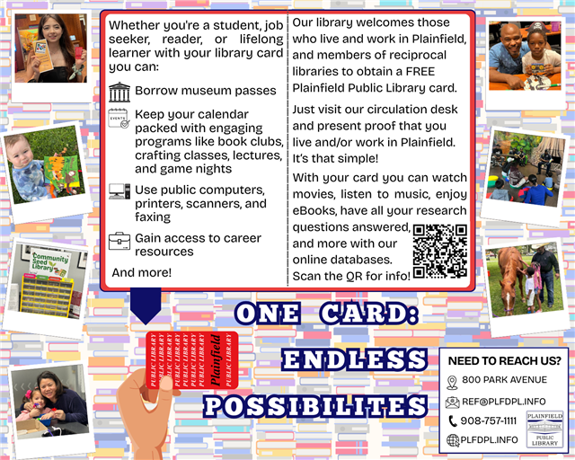 It may be small, but a library card packs a mighty punch. With it you can visit museums, take computer classes, expand your knowledge on any subject, and discover new favorite books. It’s one card with endless possibilities! |