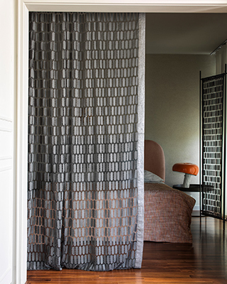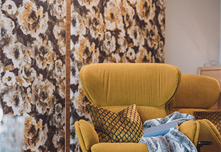 カーテン、クッション、ローラーブラインド、ヘッドボード、椅子、アームチェア、ソファのカバーを作るために、合計で130メートル以上の生地がすべてfine社のコレクションから選定されました。 |