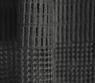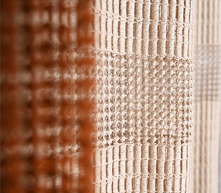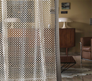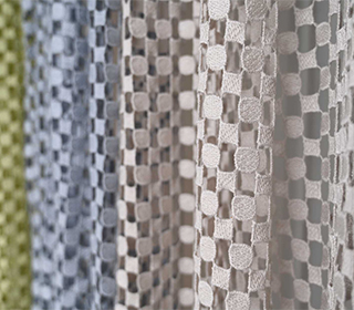 「Macrame」は楕円をつないだクラフト感漂うデザイン。「Cordino」は、異なるピッチのレースを用いてテクスチャーを表現しています。「Damina」は、円と角を組み合わせた市松模様で細部に凝ったレースです。いずれも、落ち着きのある5色展開です。日本の防炎規格には適合していないため、防炎性能が求められる箇所でのカーテンには適さない生地ですが、スローやクッションなどのデコレーションとして楽しむことができます。