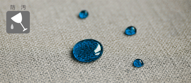 イスバリ Vol.13では、 Aqua Cleanや Fibre Guardをはじめとする防汚機能が搭載された商品を掲載しています。ページ内に防汚のマークをつけています。防汚機能のない生地でも、後加工による撥水加工で防汚性を付加することが可能な場合もあります。ぜひご相談ください。