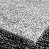 タイルカーペットの裏側は、黒いゴムのようなPVC製が主流を占めていました。形や施工の安定性や耐久性の面で優位であったためです。しかし、近年では環境への配慮から、ポリエステル製フェルトに移行しつつあります。加工時の有害物質発生のリスクが少なく、また、廃棄の際分別がしやすいという利点や、軽量であることも魅力です。