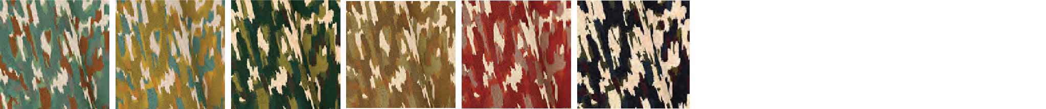 多色のジャガードですが、メインとなる2つの色を中心にいくつかの色が配されています。絵具の色が混ざっているように、隣り合わせた色がぼかしのような絶妙なグラデーション色になっています。そして色の混ざる部分の質感も、織地を複雑に変化させて表現しています。