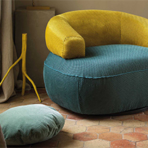 トーン・オン・トーンの効果で、斜めから差し込む光によってとても美しい陰影が作られ、奥行きのある空間を演出します。色展開も多く、どれもハッとさせられる色ばかりです。