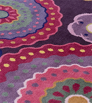 デザインのインスピレーションは、「色」に対する強い愛情と、彼女自身のアイデアのアーカイーブから生まれています。アイデアのストックは、今日取り組むカーペットやテキスタイルとして再想像したり、新たな解釈を加えて発展させることができます。しかし、それ以上に彼女は、「私は常に探している。どこへ行っても常に探している。」とも語っています。