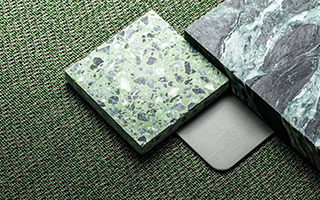 もう一つの大きなデザイントレンドは、テラゾーの再解釈です。ビニール素材からインスピレーションを得たもの、斬新でユニークな形状のカラーポップまで、テラゾーは多く注目を集めていました。
