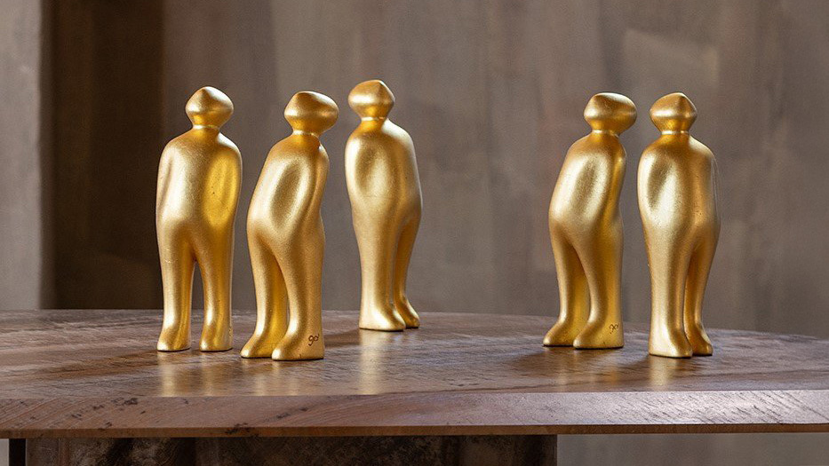 ベルギーの芸術家グイド・デルー氏のデザインによるアートワーク The Visitorシリーズの15周年を記念して作られたモデル。ベネチアの伝統的な金箔細工による仕上げで、細りつつある伝統工芸復活へのアプローチも試みている。(陶器) |