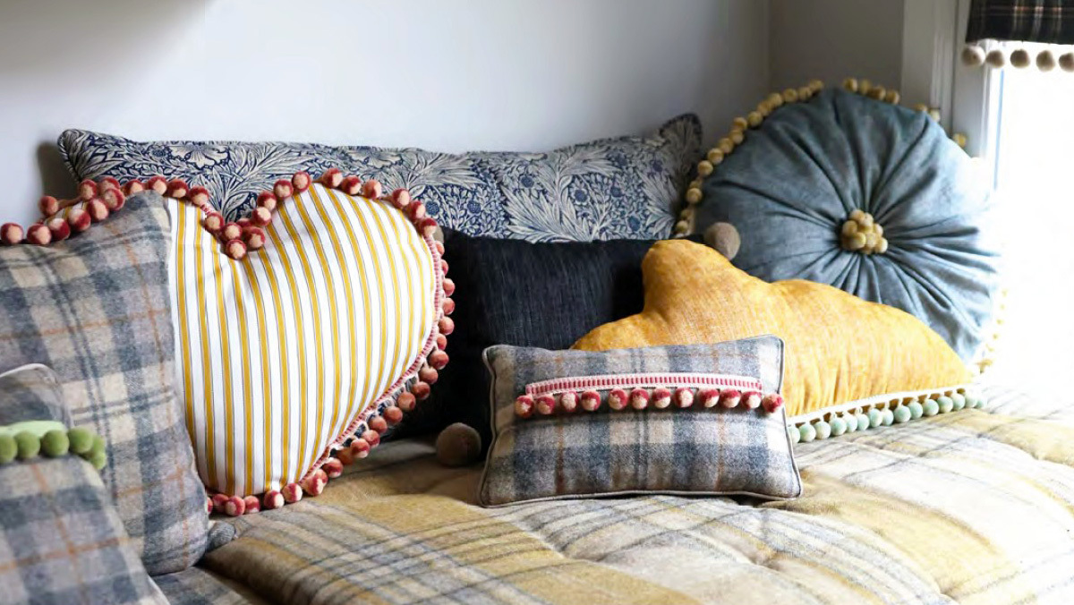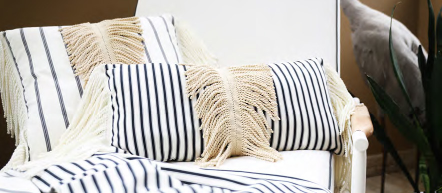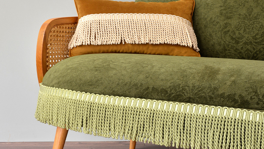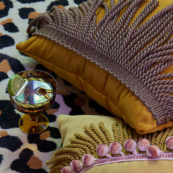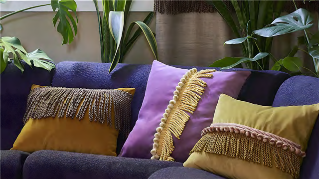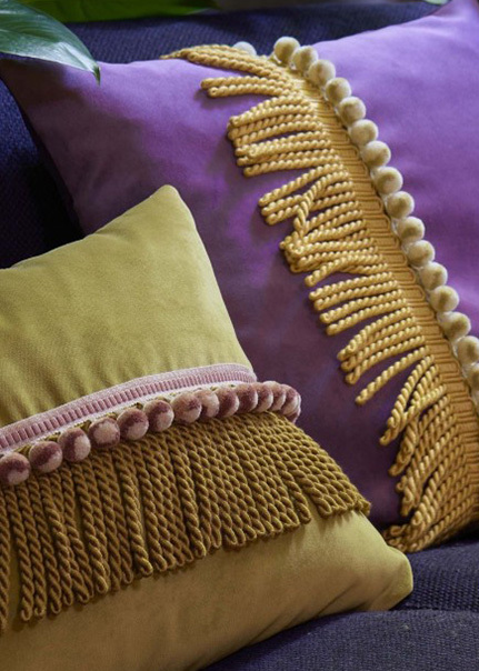 フリンジはクラシカルなスタイルだけのものではありません。ハッとする色使い、組み合わせ、新たなフリンジの使い方やアレンジの仕方など、トリミングで広がる豊かなでデコレーションの魔法をお楽しみください。 |