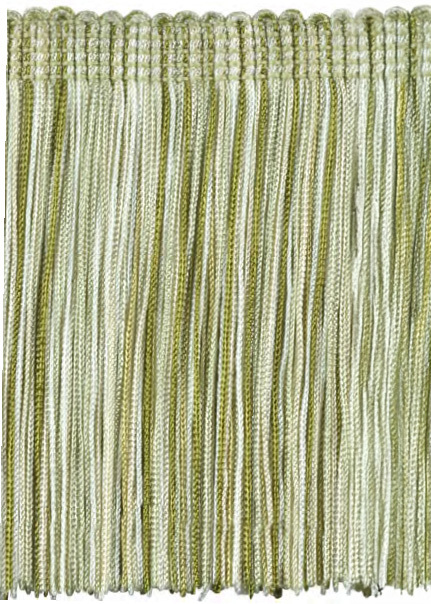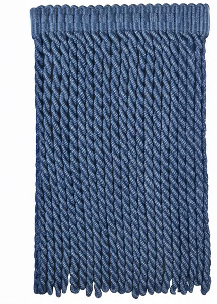 カットして使うこともできます。色や長さを変えて重ねることで、アートワークにもなります。クッションやカーテンの表面に付けると動きのある柄に変身します。フリンジ自体が濃淡の同系色糸で構成され陰影があり、色合いも美しく味わいもあります。 |
