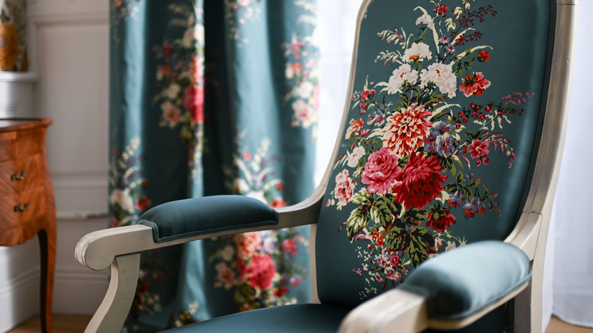 20世紀にはスクリーン捺染の登場により、多色で自由度の高い構成が実現し、花柄はより大きく、より大胆なスケールで空間に関わるようになります。