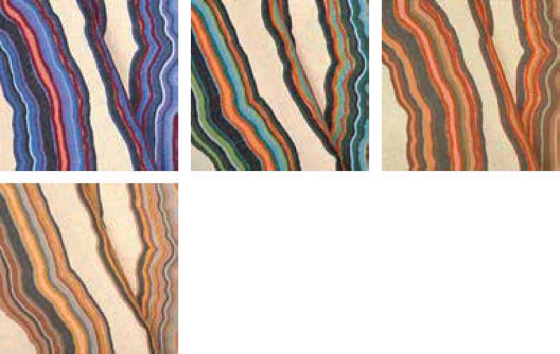 プリント生地「CUZCO(クスコ)」は、不規則で対称的なストライプが特徴です。刺繍の縁取りが視覚的にも触感的にも贅沢な雰囲気を醸し出します。
