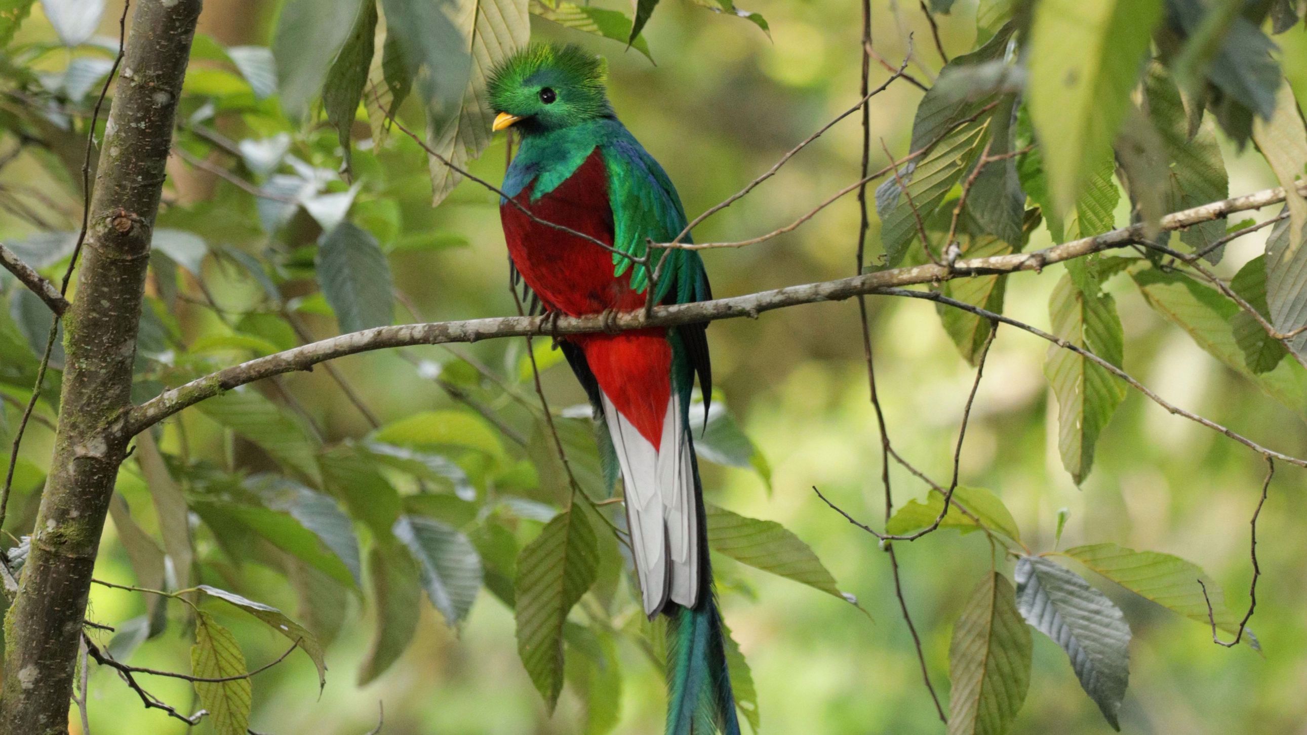 QUETZAL(ケツァール)は、中米の熱帯雨林に生息する鮮やかな緑と赤色の美しい鳥で、特にオスの1mにもおよぶ長い飾り羽は、「世界一美しい鳥」と呼ばれる所以です。頭から背にかけては光沢のあるエメラルドグリーン、腹部は深紅で、非常にカラフルな見た目をしています。