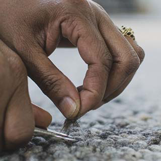 こだわっているのは「手作り」。羊の毛刈り、染色、製糸、織り、結び、タフティングに至るまで、確かな技術を持つ人の、手をかけた職人技を大切にしています。手織りのカーペットは機械織りのカーペットとどう違うのか、という問いに、人の手によるものには魂が宿り、調和、活力、そして情熱を放つ、と答えています。